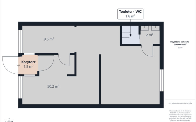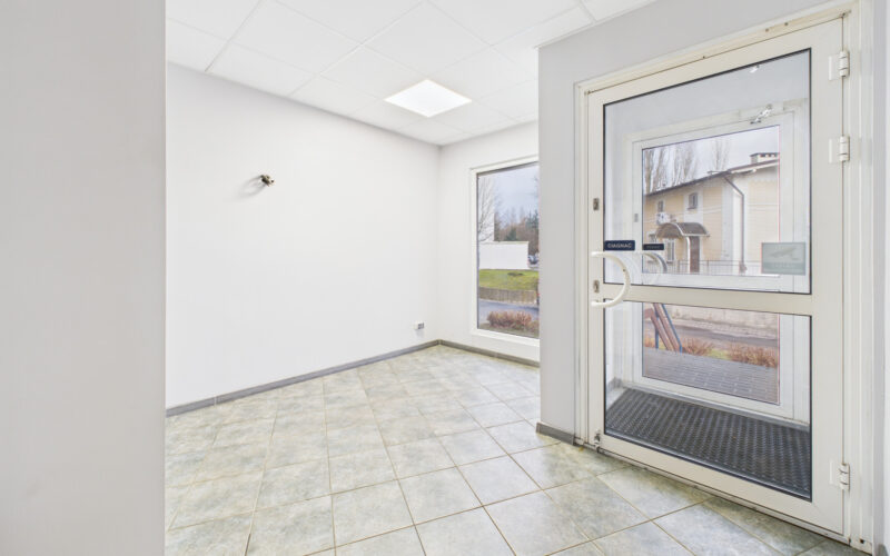 Lokal o powierzchni 65 m² mieści się w samodzielnym budynku, co znacząco podnosi jego atrakcyjność inwestycyjną i niezależność użytkowania. Funkcjonalny układ obejmuje wiatrołap, trzy niezależne pomieszczenia oraz zaplecze sanitarne. Wysokość pomieszczeń 2,90 m zapewnia komfort pracy oraz możliwość różnorodnej aranżacji wnętrza.